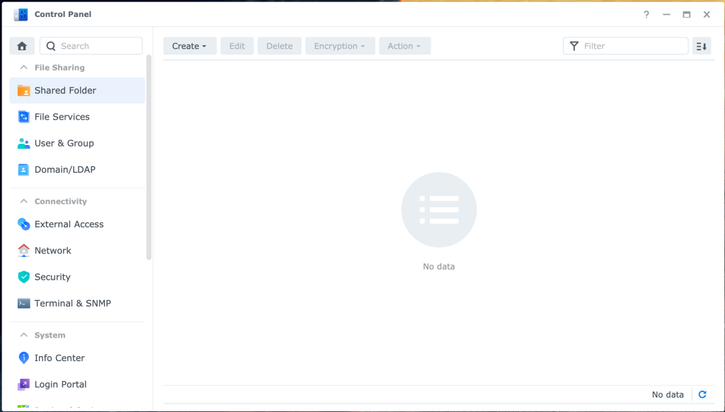 The creation of Shared Folders is done within the Control Panel. The Control Panel is another application located in the menu bar or desktop of your Synology Disk Station.