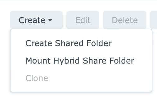 Under the “Create” Menu you will have the ability to “Create Shared Folder”.